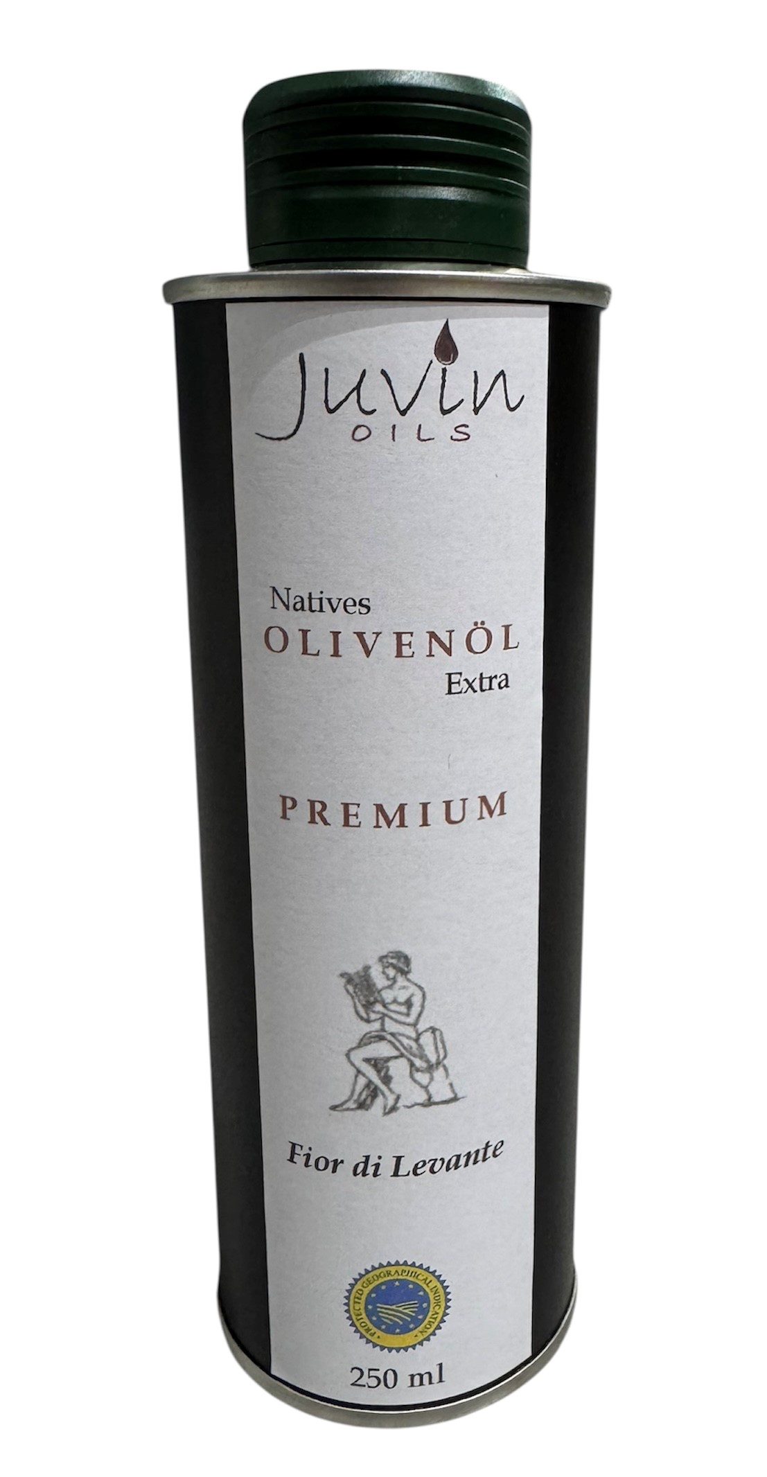 JUVIN Extra Natives Olivenöl ist ein 100% sortenreines Premiumprodukt. Es wird aus der Coronega Olive gewonnen. Der Geschmack ist unverwechselbar aromatisch.